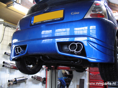 Een Custom made dubbel uitlaat-systeem in RVS met sier-eindstukken
